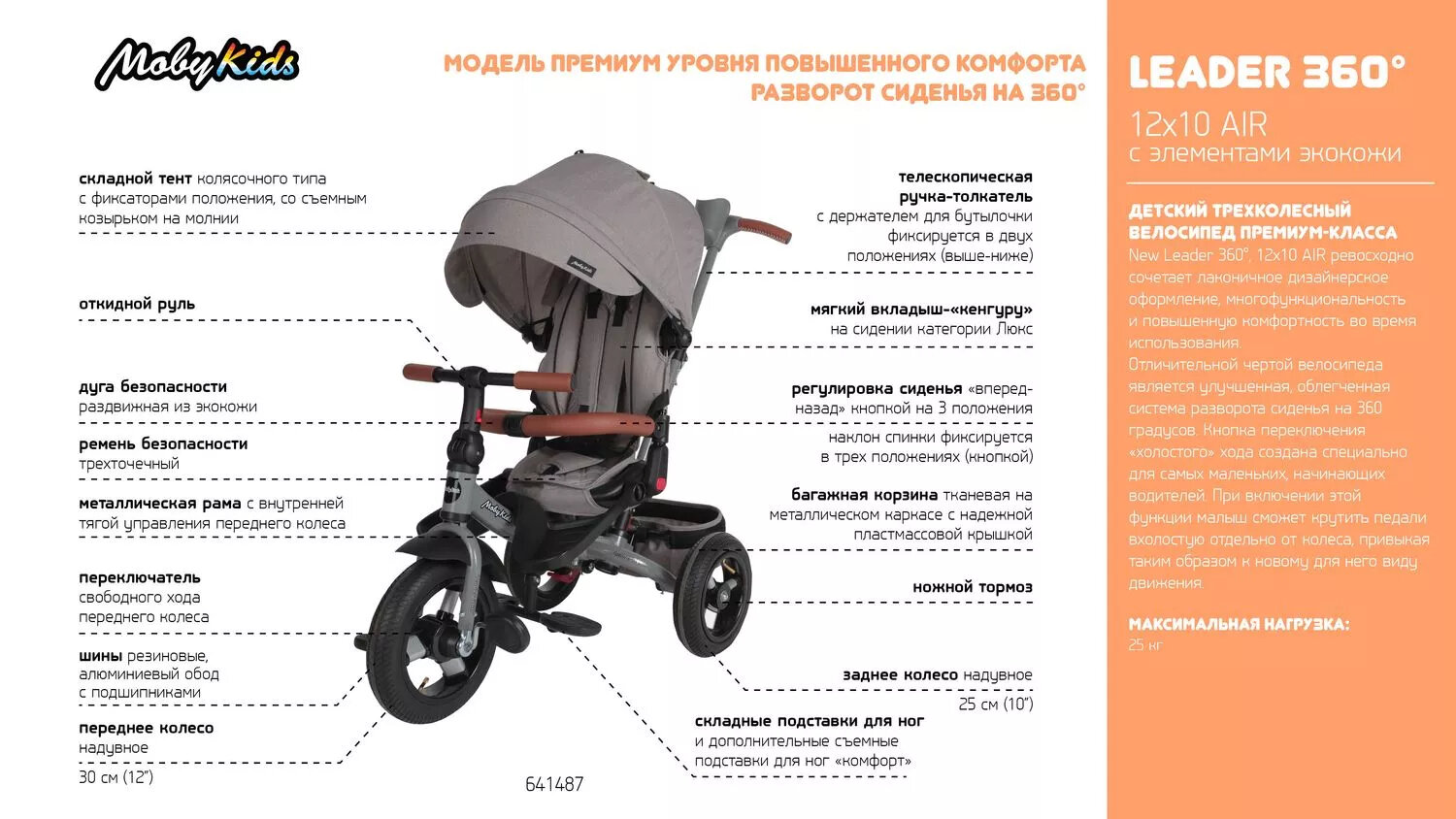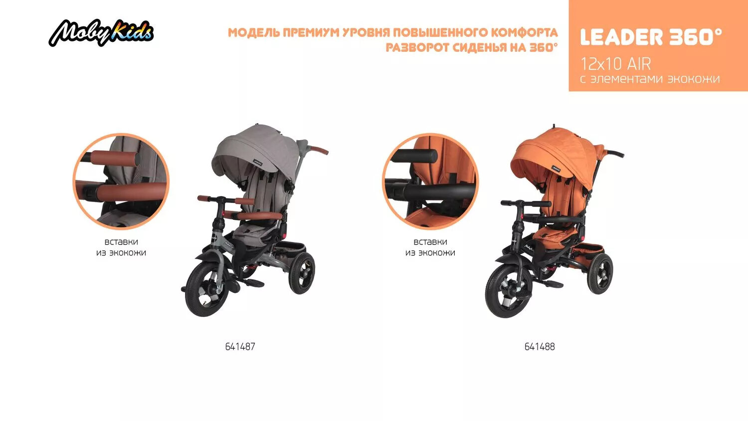 Велосипед трёхколёсный Moby Kids Leader 360 12X10 air с элементами экокожи