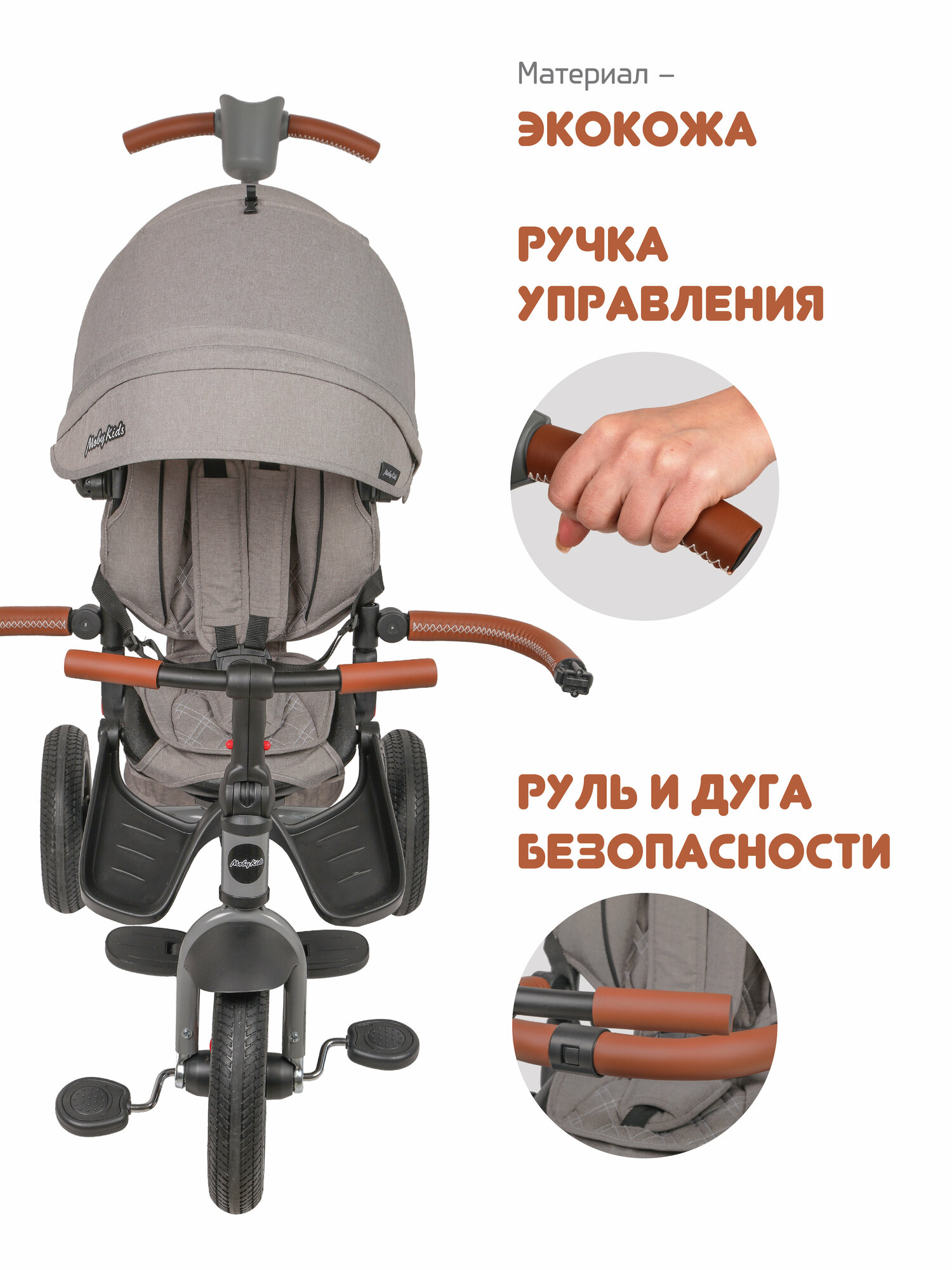Велосипед трехколесный Leader 360°, 12x10 AIR, серый, элементы экокожи интересное: