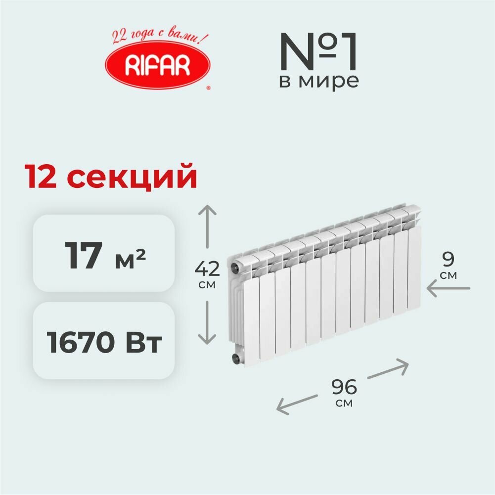 Биметаллический радиатор Rifar Base 500x100x7 секций, 1379 Вт, белый