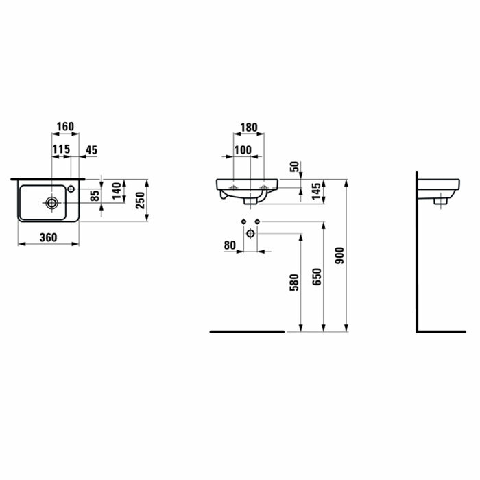Мини-раковина Laufen Pro S, 36x25, отверстие для смесителя справа 8.1596.0.000.104.1