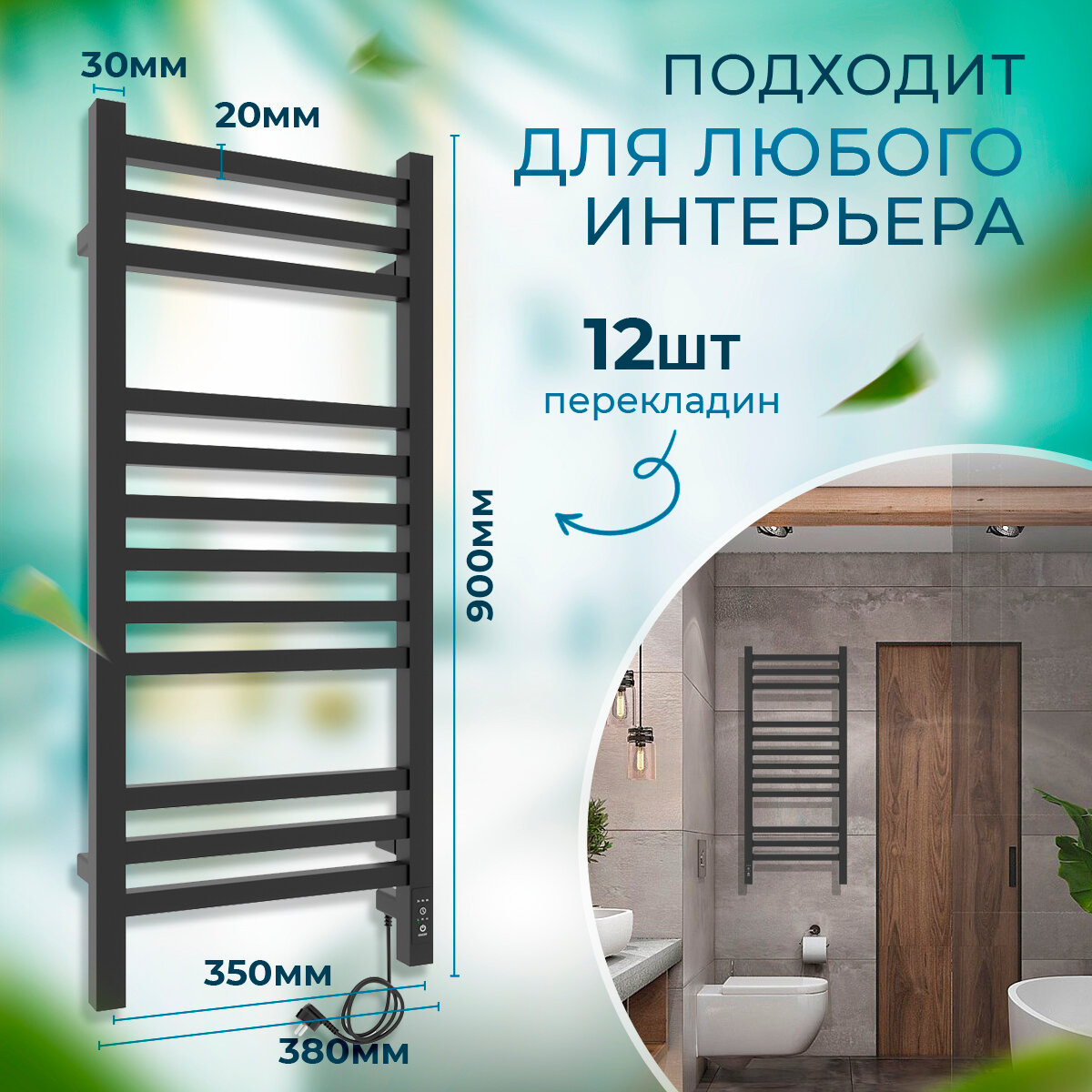 Полотенцесушитель электрический Астор ЧКЧ П12 350х900 Черный матовый правое подключение