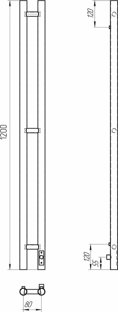 Полотенцесушитель электрический Laris Прайм Дуэт ЧКЧ 80х1200 Круг 80Вт, правое подключение