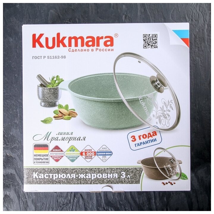 Кастрюля-жаровня KUKMARA жмс52а, светлый мрамор, крышка стекло