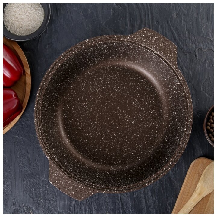 Кастрюля-жаровня Kukmara "Кофейный Мрамор", с антипригарным покрытием, с крышкой, 3 л