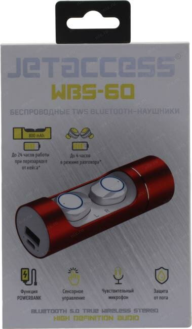 Купить Беспроводные TWS BLUETOOTH наушники JETACCESS WBS-60 бело-красный (BT5.0,сенс.упр.,800mAh, powebank)