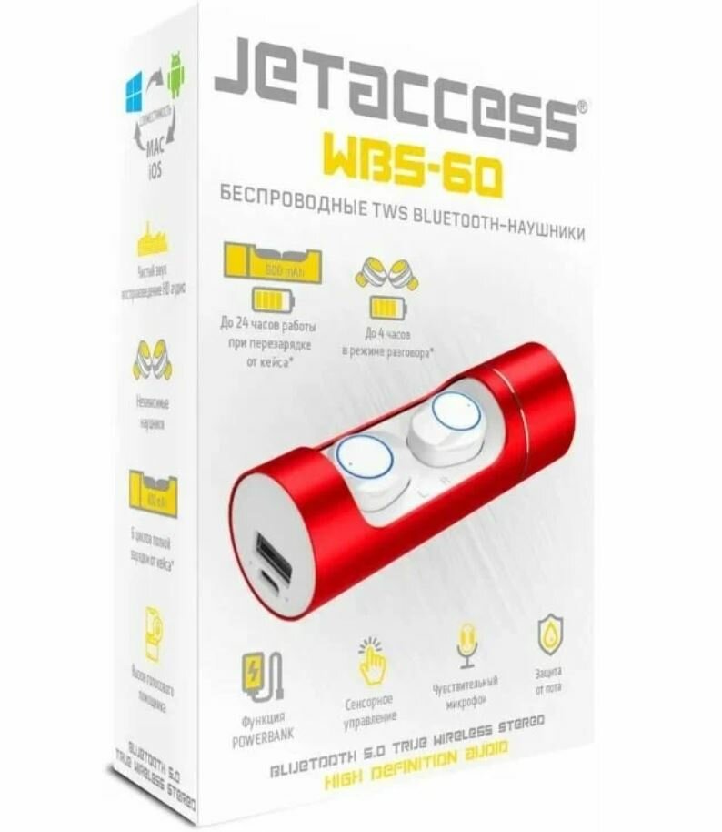 Беспроводные TWS BLUETOOTH наушники JETACCESS WBS-60 красные