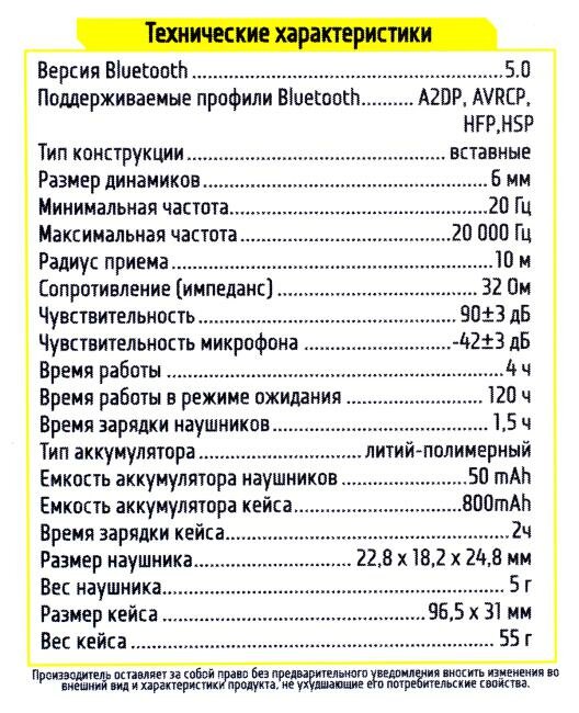 | Вес (одного наушника) | 5 г |