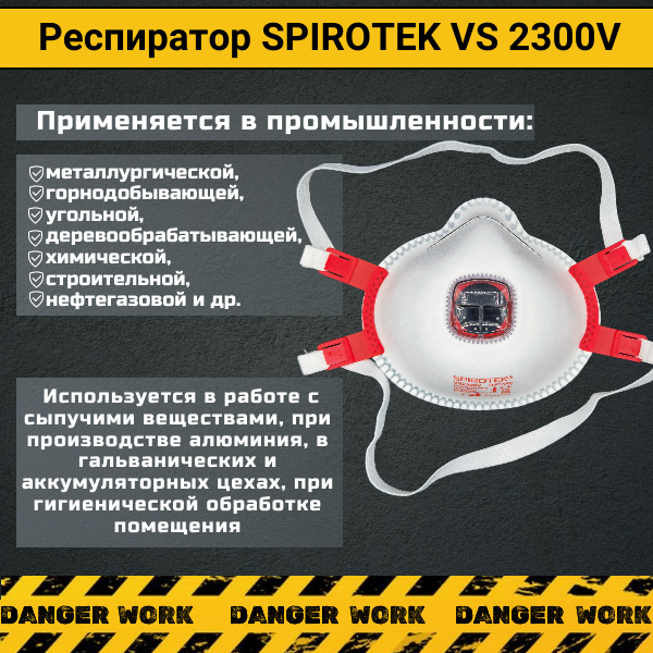 Респиратор Spirotek VS 2300 V; для строительных работ; от пыли; универсальный;