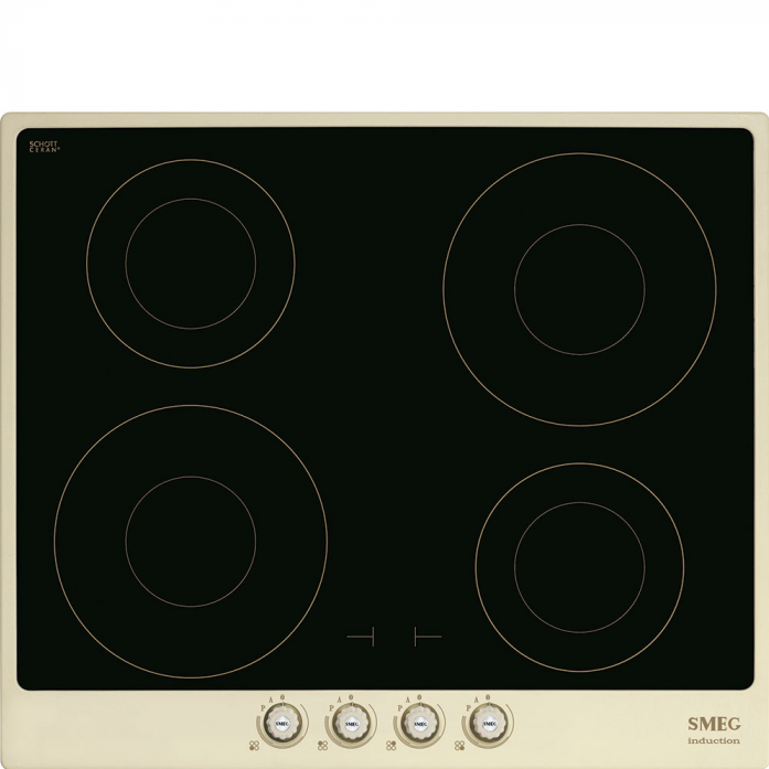 Варочная панель Smeg индукционная, 60 см, поворотные переключатели, кремовая, латунная фурнитура, черная стеклокерамика
