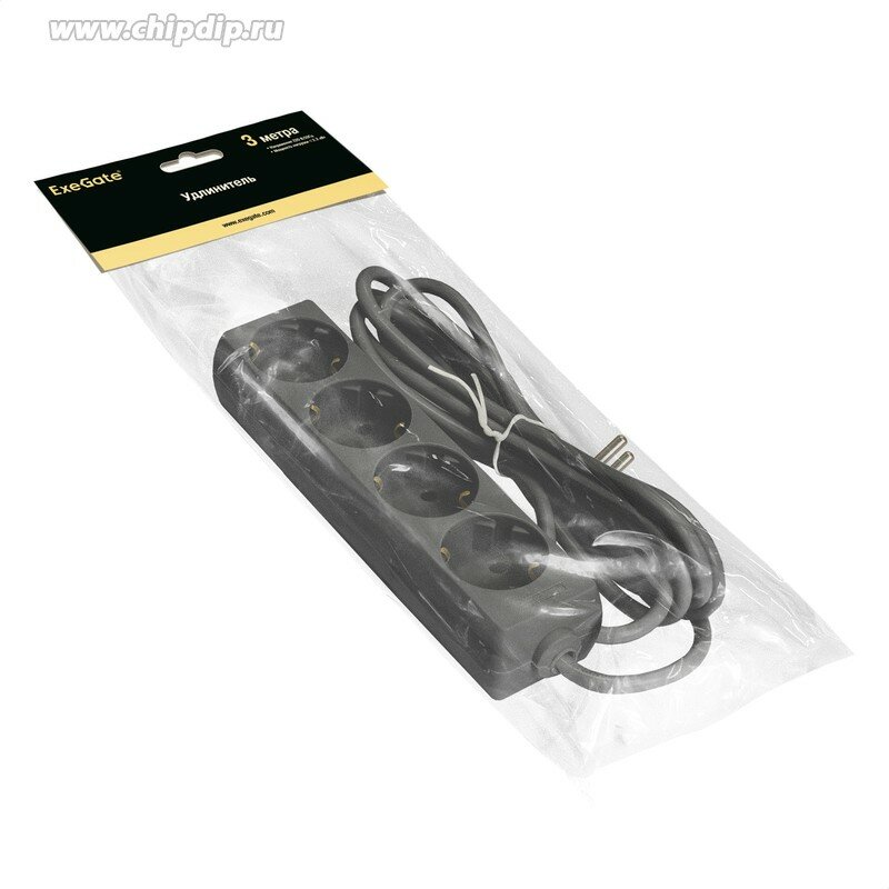 Купить Удлинитель ExeGate ECE-4-3B (4 евророзетки с заземлением, 3м, черный) EX285813RUS