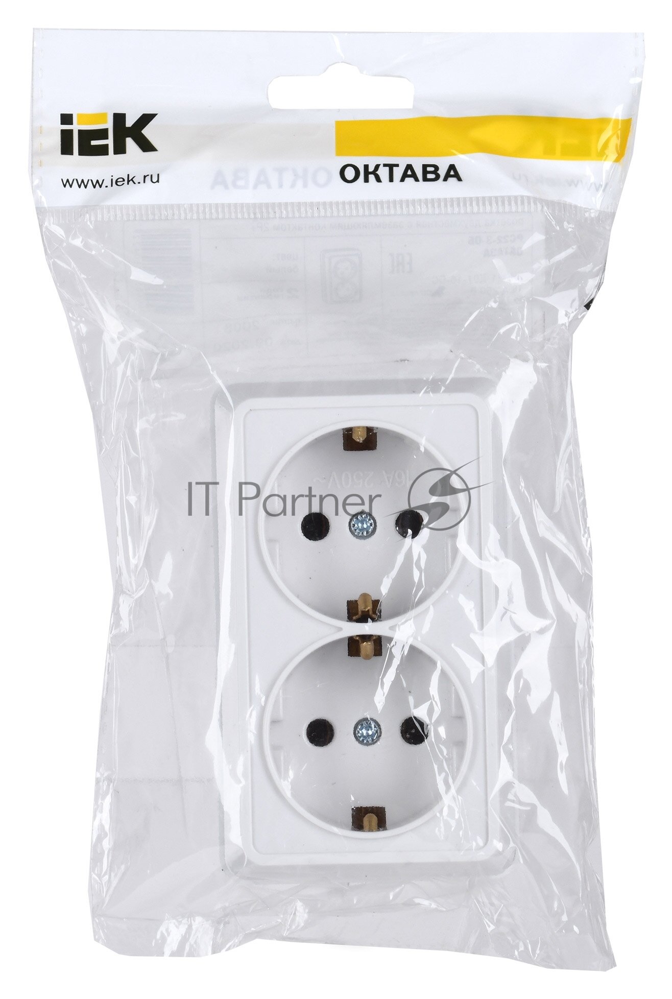 2шт. - Октава Розетка двойная наружная с заземлением белая / IEK; арт. ERO21-K01-16-DC; оригинал / - комплект 2шт