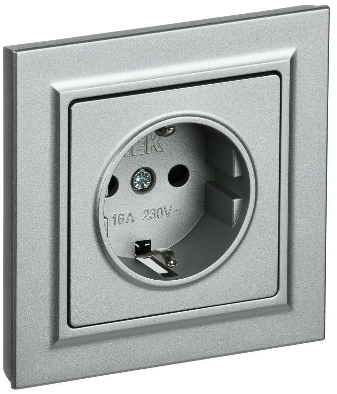 BRITE Розетка с заземлением с защитными шторками 16А РС14-1-0-БрА алюминий , IEK BR-R14-16-K47 (1 шт.)