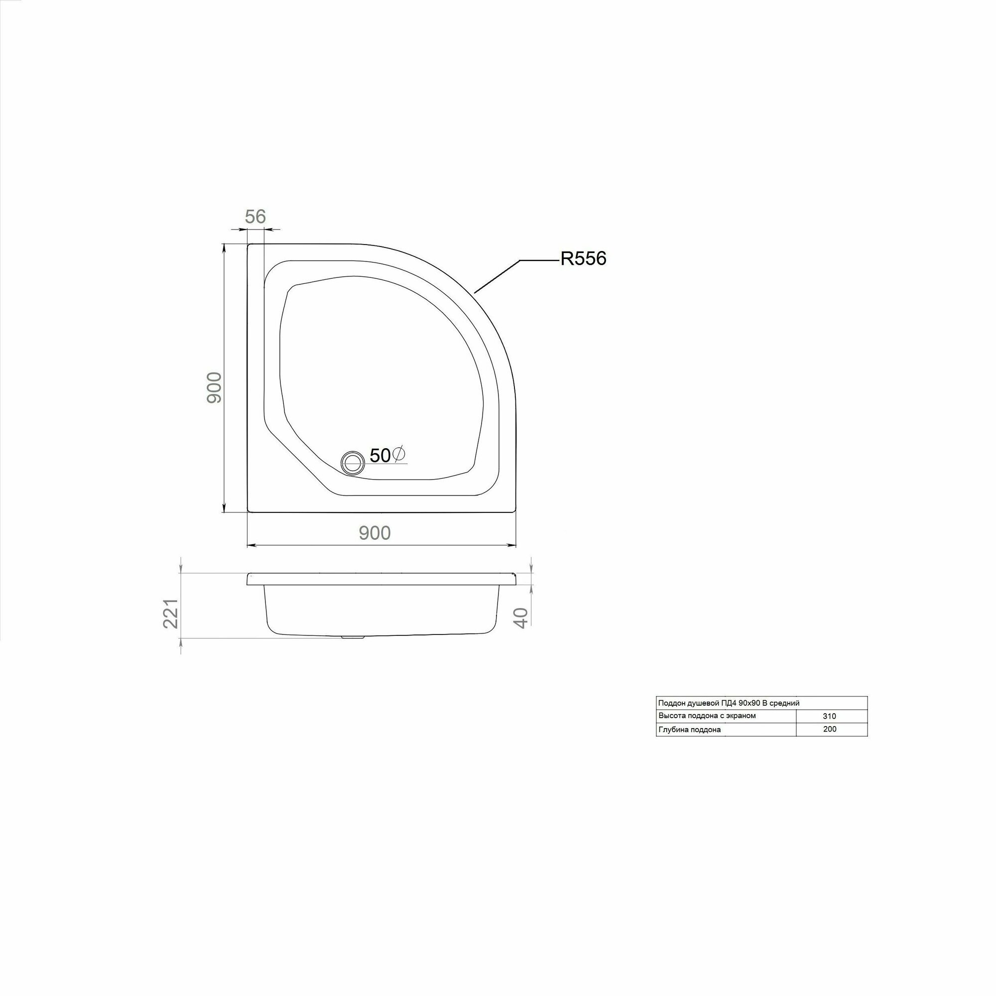 Акриловый душевой поддон TRITON 90х90 полукруг средний 310мм ПД4