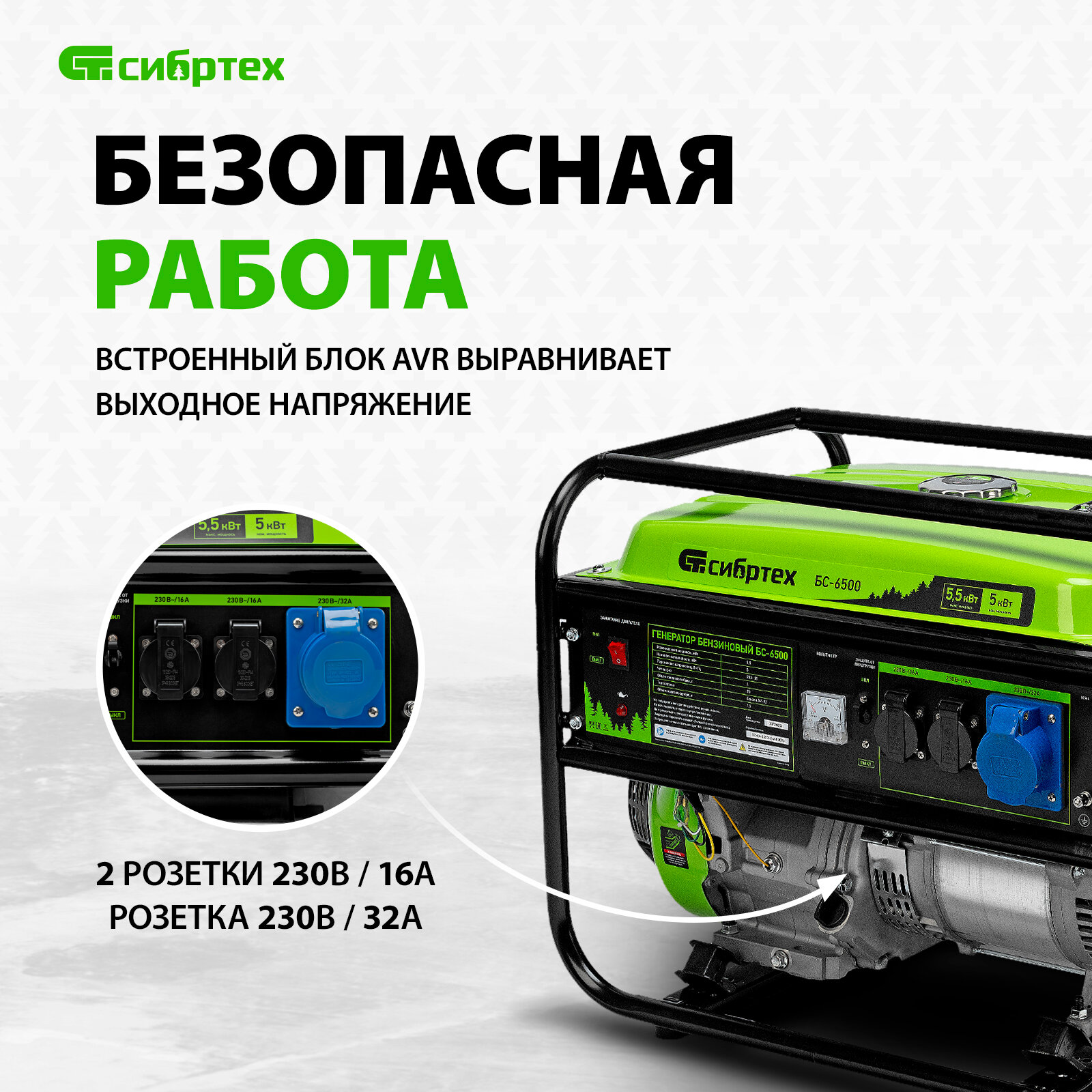 Генератор СИБРТЕХ БС-6500, 5500 Вт
