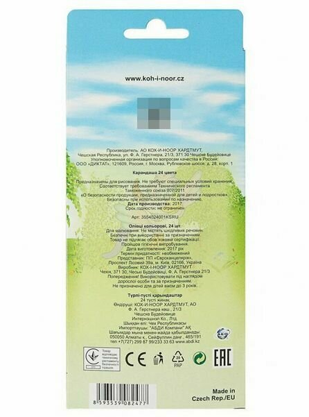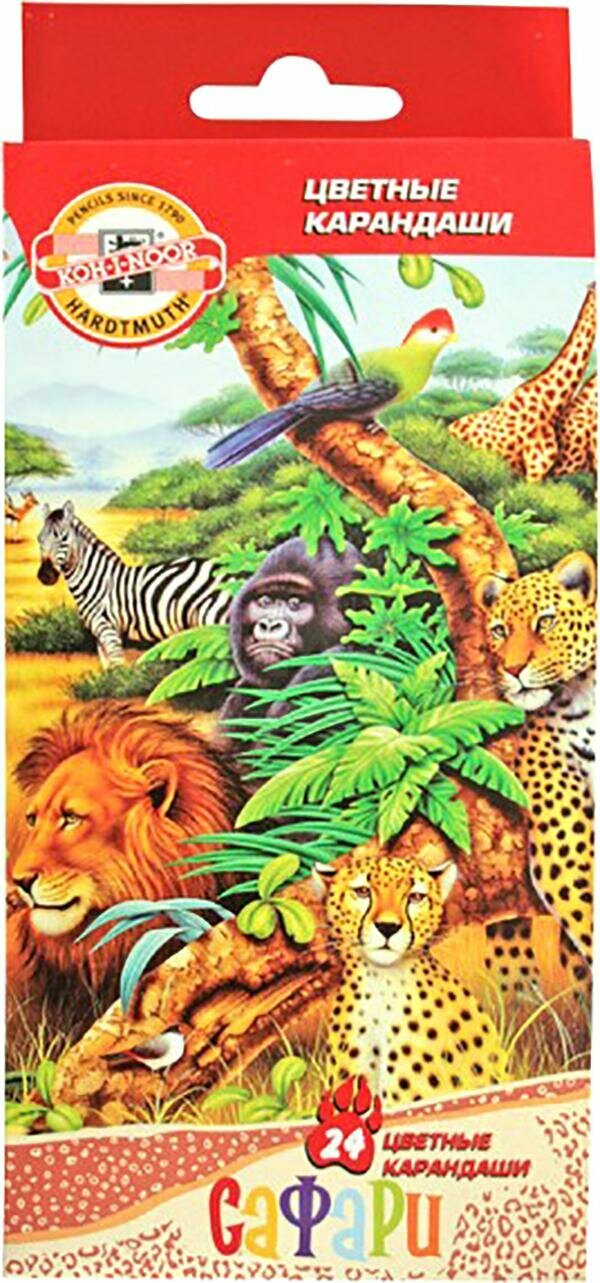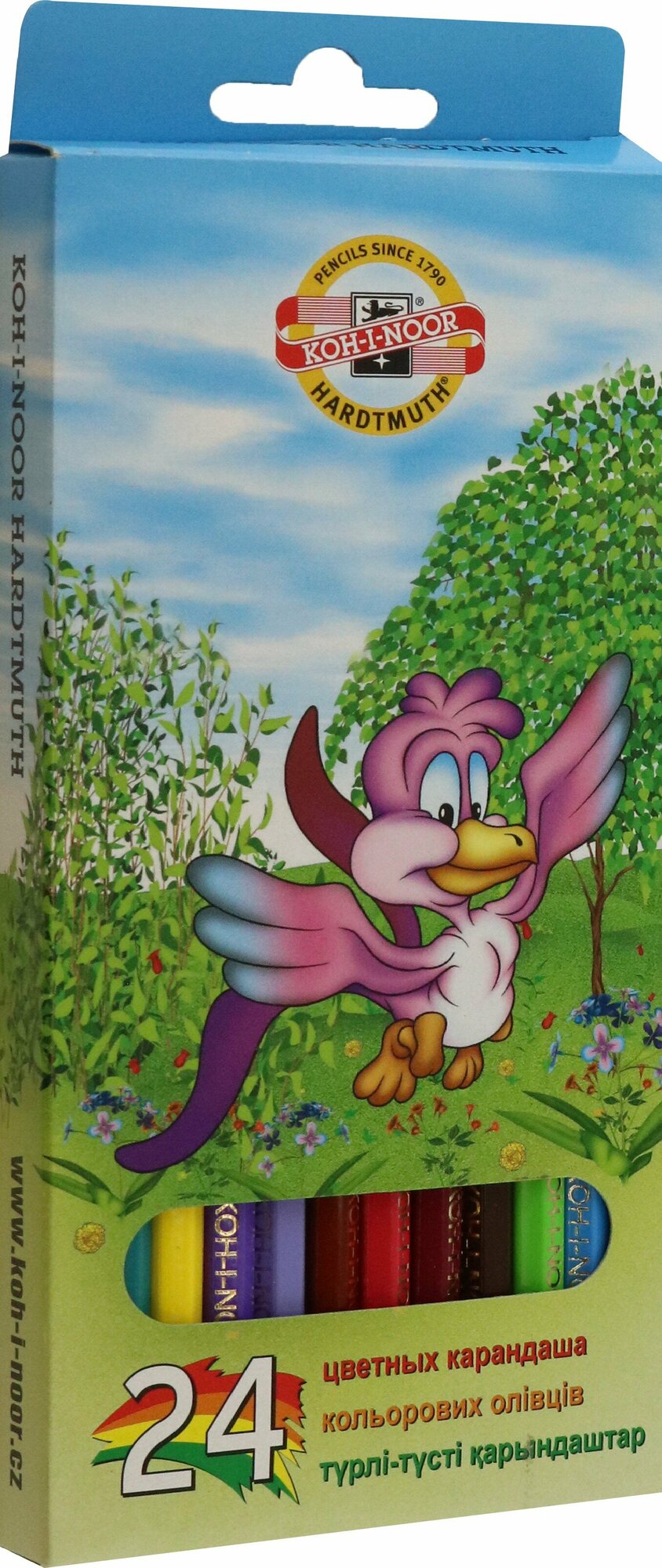 Карандаши цветные 24 цвета Koh-I-Noor "Птицы" (L=175мм, D=6.9мм, d=2.8мм, 6гр) картонная упаковка (3554/24 birds)