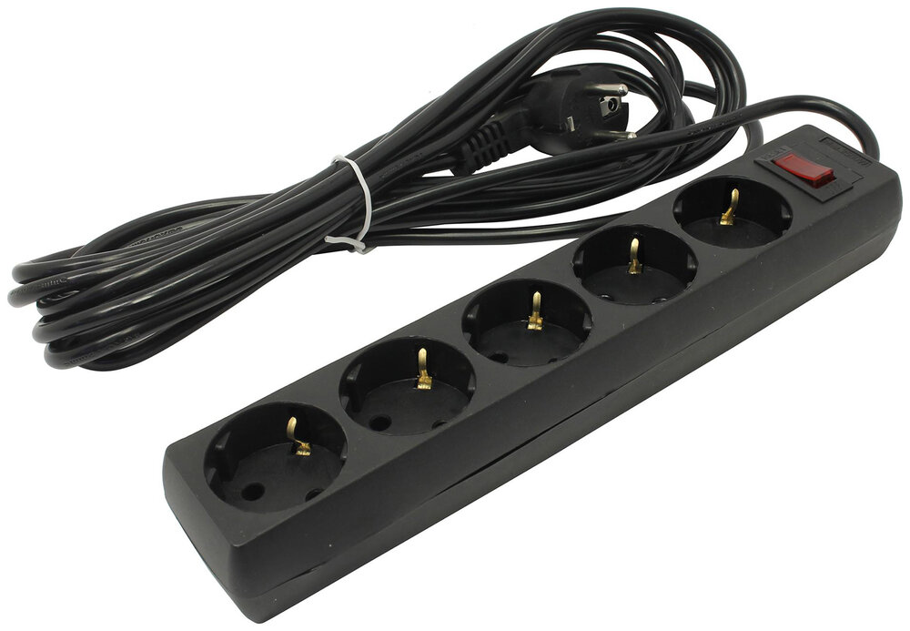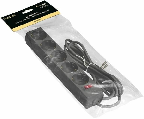 Удлинитель ExeGate Ec-5-5b (5 евророзеток, 5м, выключатель, черный) .