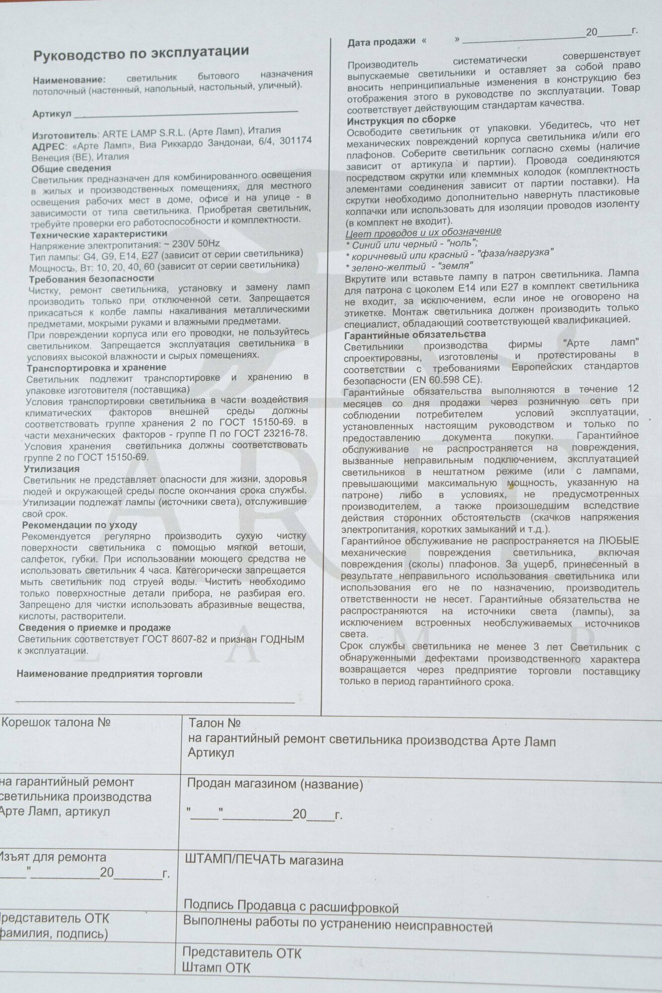| Производитель | Arte Lamp |