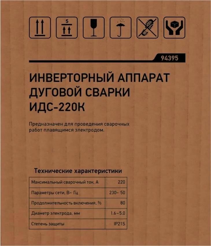 Инверторный аппарат дуговой сварки ИДС-220K, 220 А, ПВ 80%, диаметр электрода 1,6-5 мм Сибртех (94395)