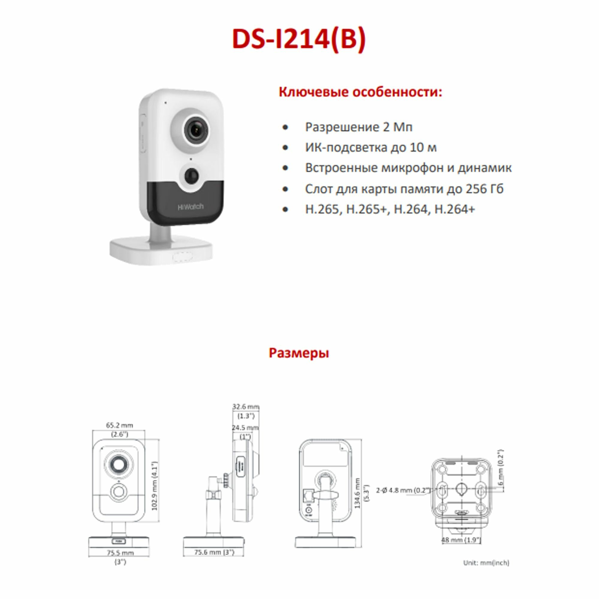 2 Мп компактная IP-камера Hiwatch DS-I214(B) (4.0 мм) с EXIR-подсветкой до 10м и микрофоном интересное: