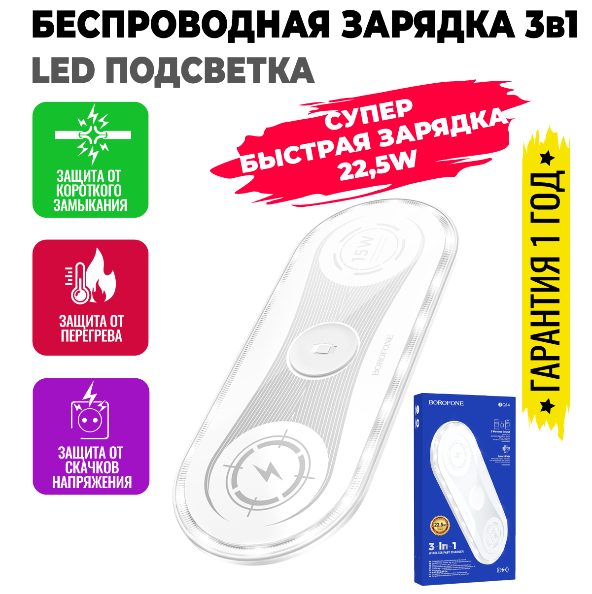 Беспроводное зарядное устройство 3 в 1 BOROFONE/быстрая зарядка/белая