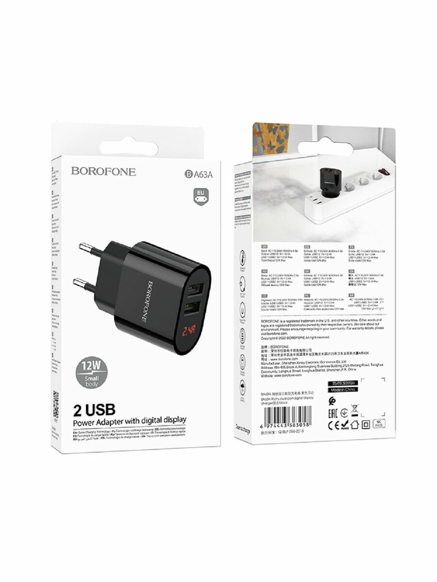 Borofone Сетевое зарядное устройство Borofone BA63A, 2xUSB, 2.4 А, дисплей, белое