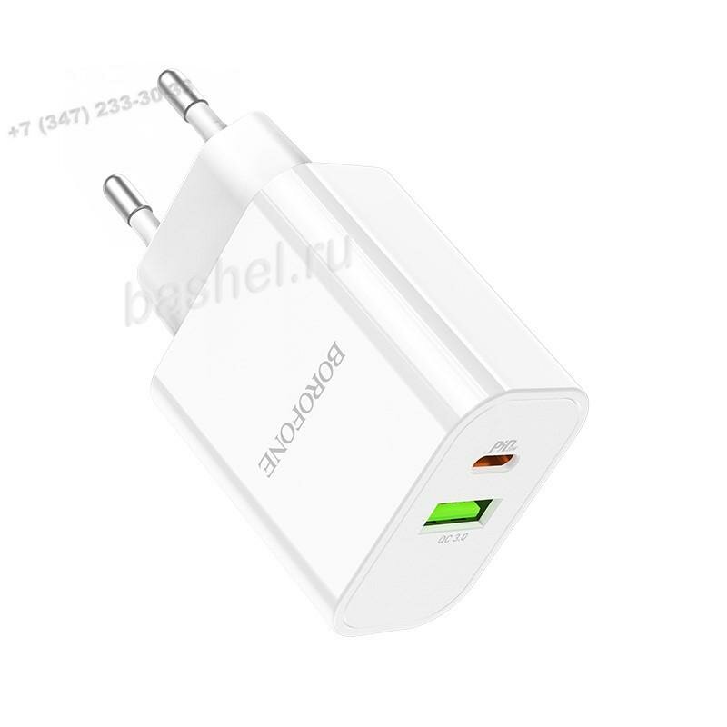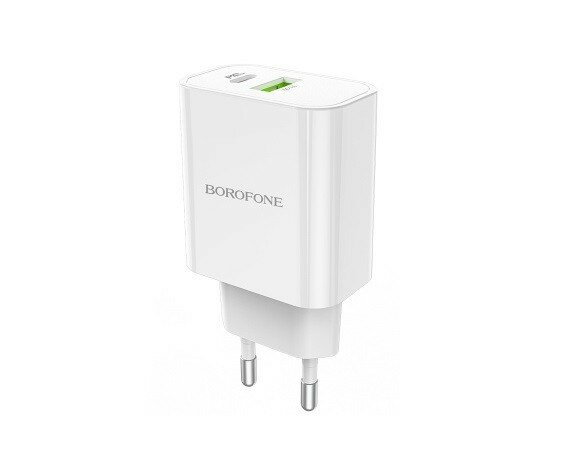 1USB + 1USB-C Borofone BA55A, PD20W, QC3.0 - сетевое зарядное устройство, белый