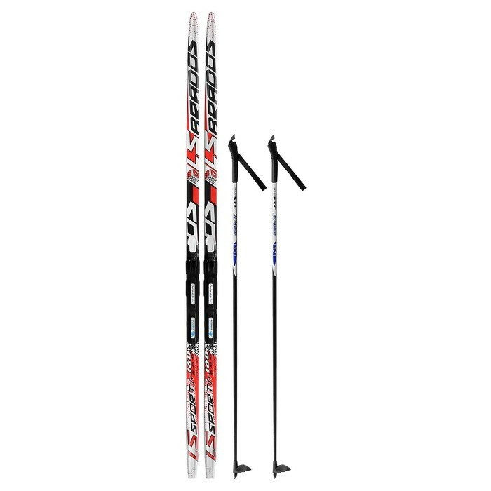Комплект лыжный: пластиковые лыжи 160 см без насечек, стеклопластиковые палки 120 см, крепления SNS