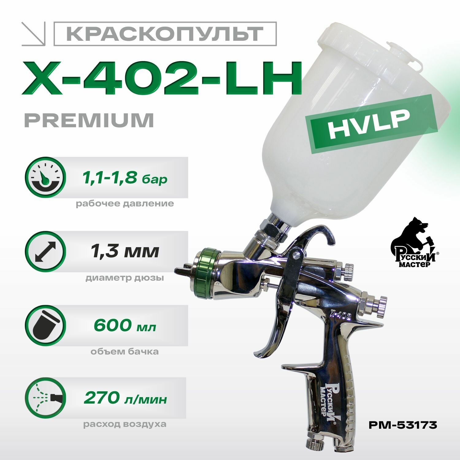 Купить Русский Мастер Краскопульт X-402-LH Premium HVLP 1.3мм РМ-53173