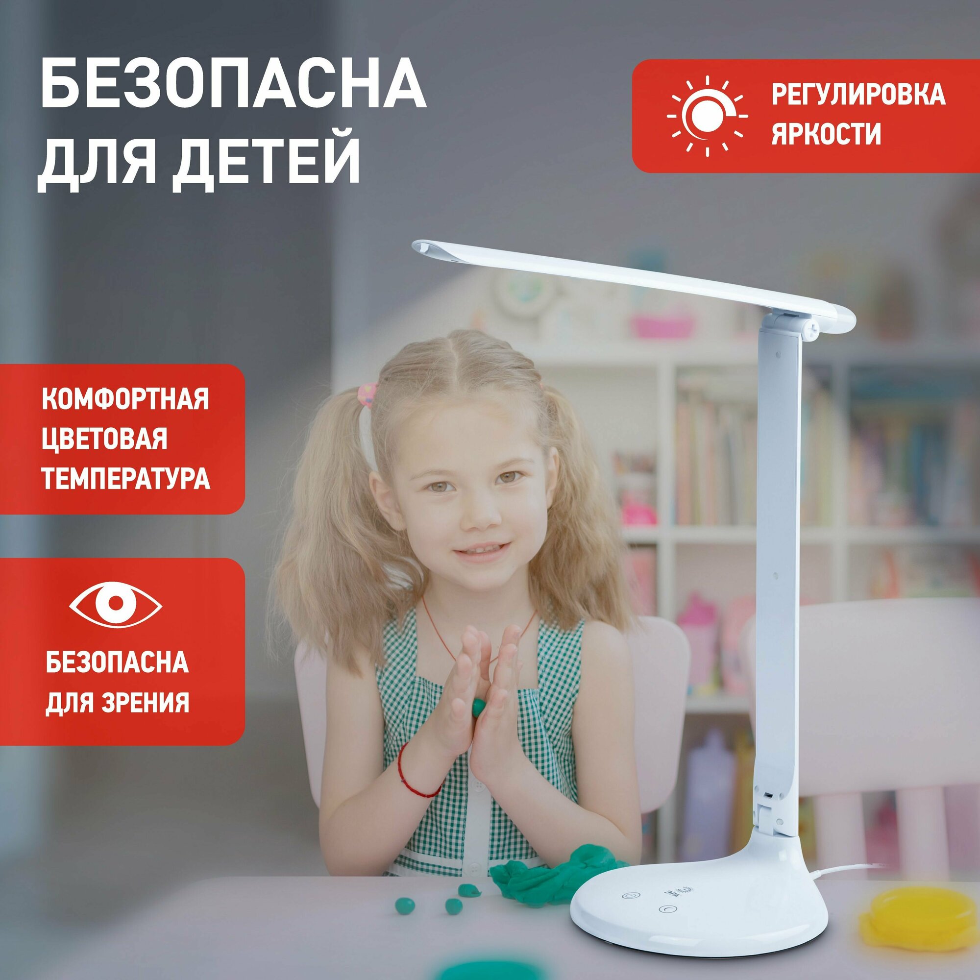 Лампа настольная светодиодная офисная для школьника, для учебы, для чтения ЭРА NLED-482-10W-W / Светильник настольный хай-тек, лофт с регулировкой яркости и сенсорным управлением, белый