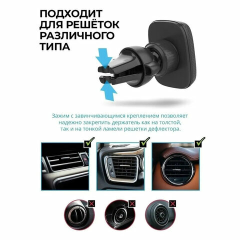 На VW Polo немного широкие "зажимы"...до конца не влезает. Сделал пропил в центре губок и расширил пропил надфилем (шкуркой) под упирающиеся вертикальные внутренние "жалюзи" в решетке обдува. Сидит как "родное"! Рекомендую. Магнит цепкий, хороший!