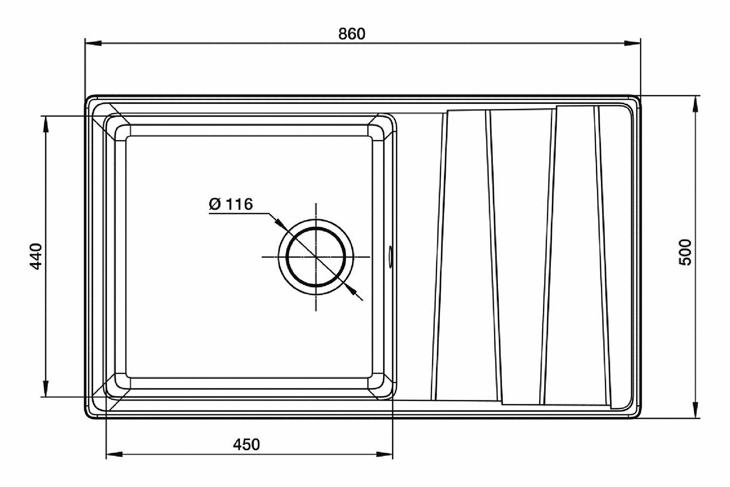 | Ширина мойки | 86 см |