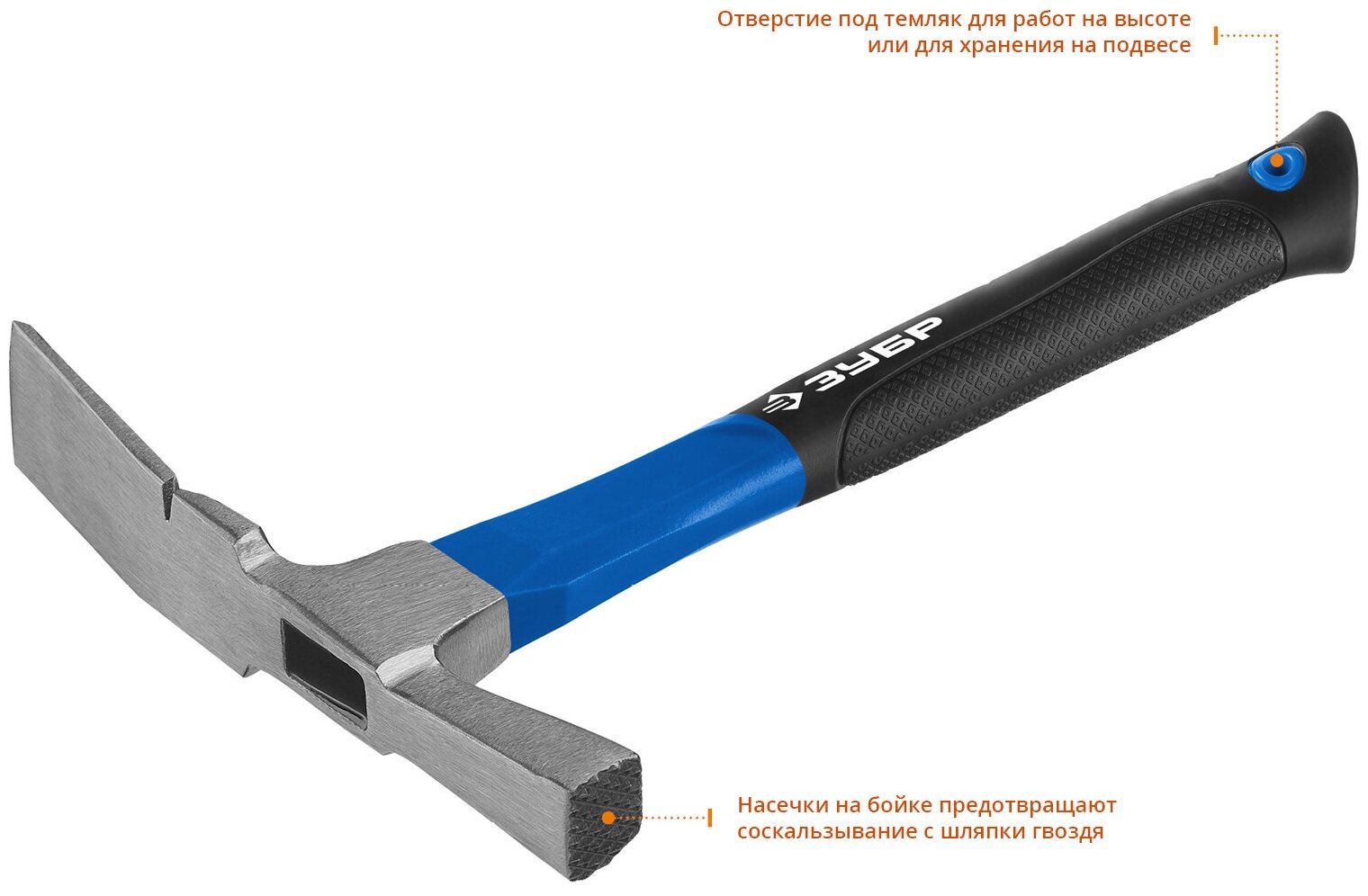 Молоток каменщика ЗУБР Профессионал МК-Ф с фиберглассовой рукояткой 600 г 20163