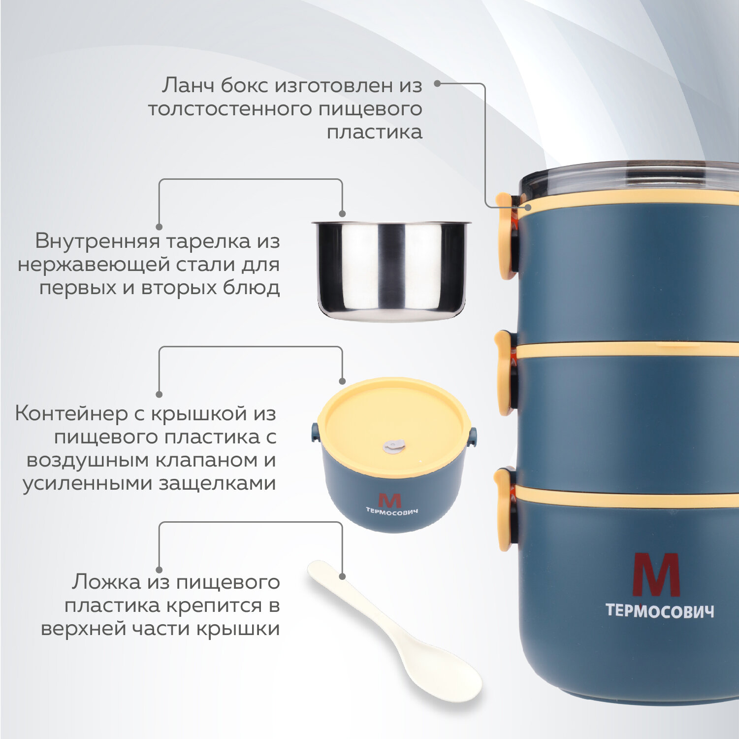 Ланч бокс, контейнер для еды, 2,2 литра, Термосович интересное: