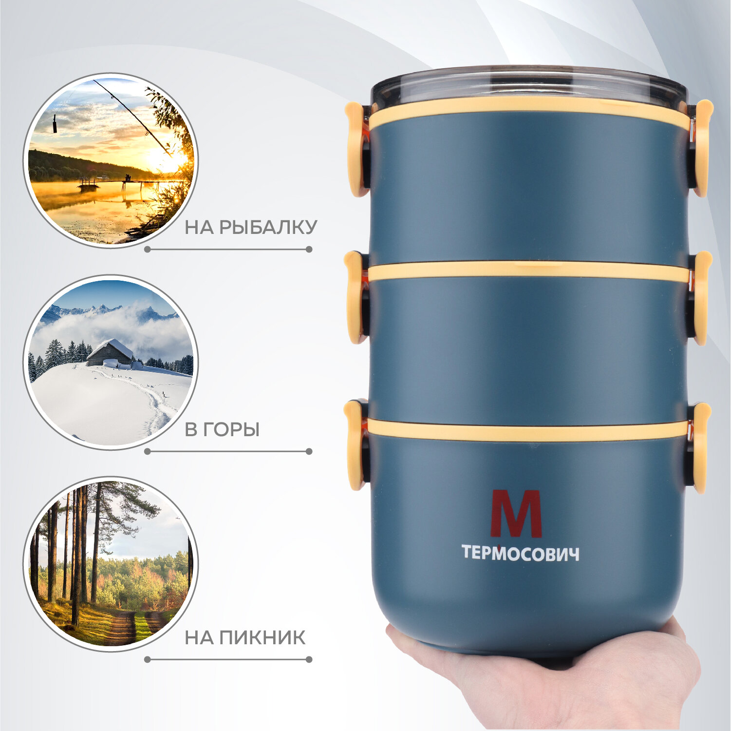 Ланч бокс, контейнер для еды 2,2 л, 3 секции, Термосович