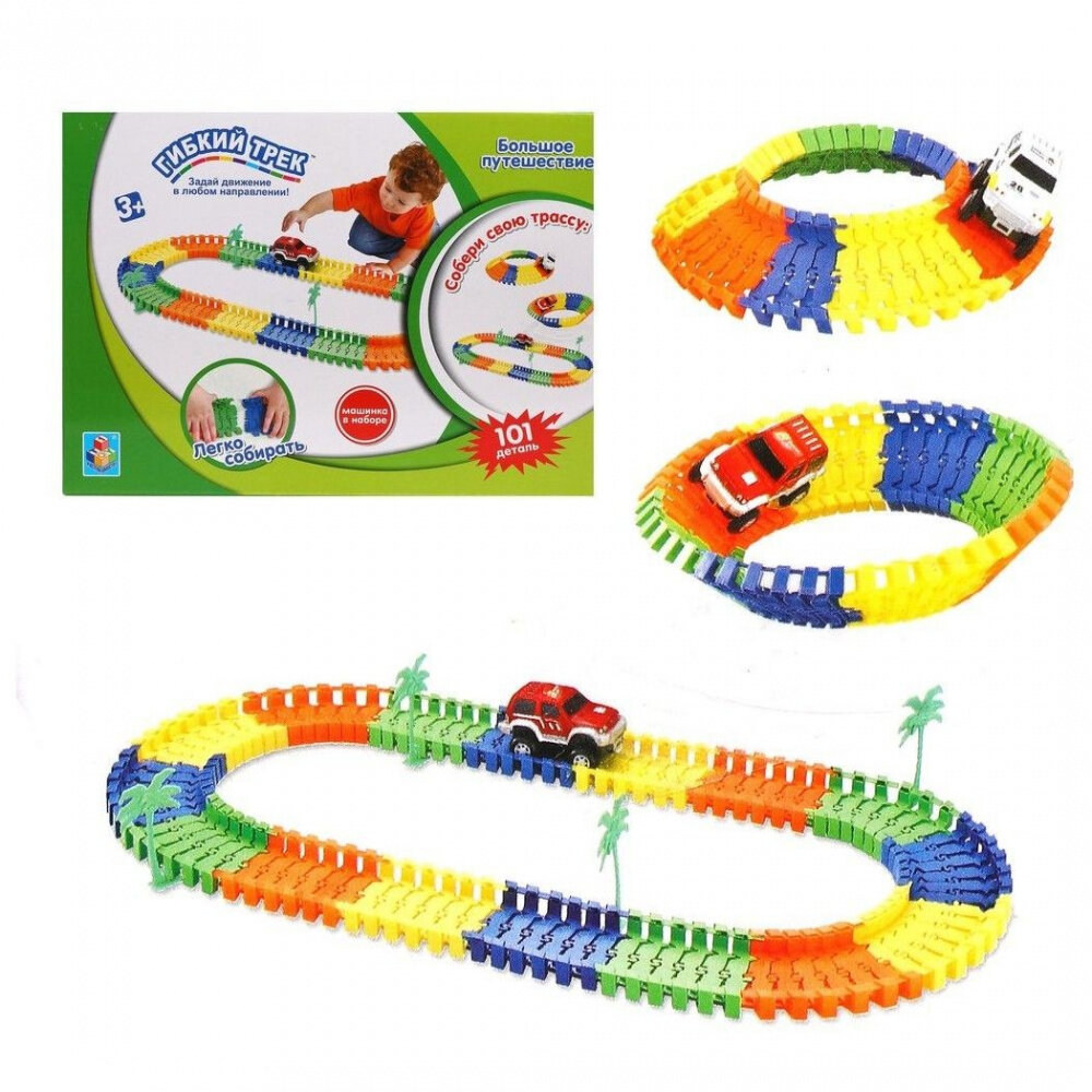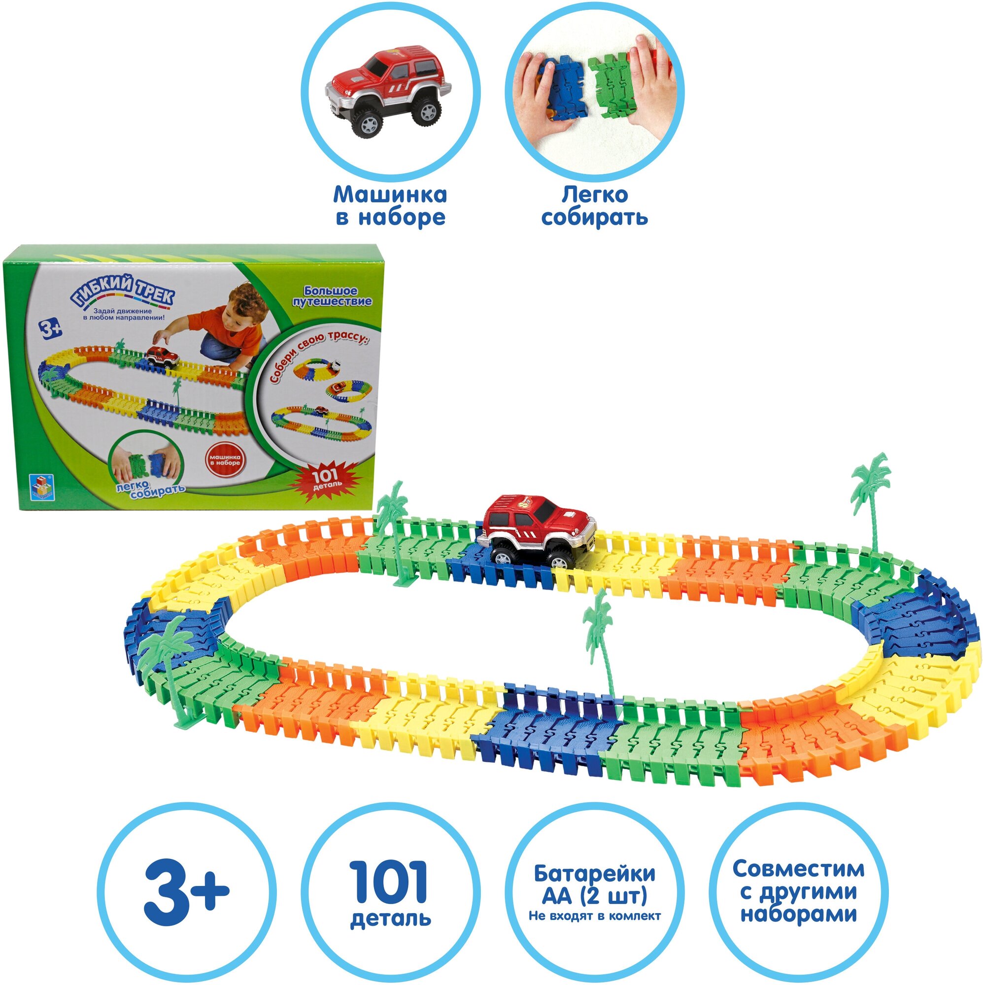 Гибкий трек 1Toy "Большое путешествие" 101 деталей, пальмы, машинка (Т59315) интересное: