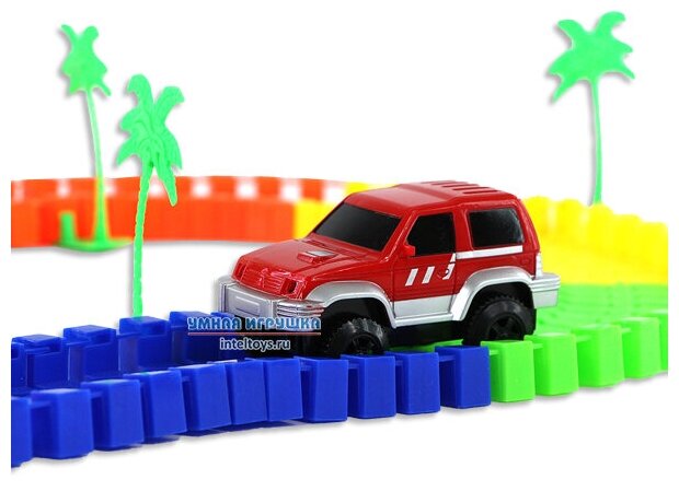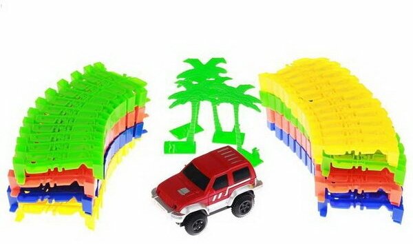 1toy гибкий трек"Большое путешествие" 101 дет, пальмы, машинка, 25x18x6 см
