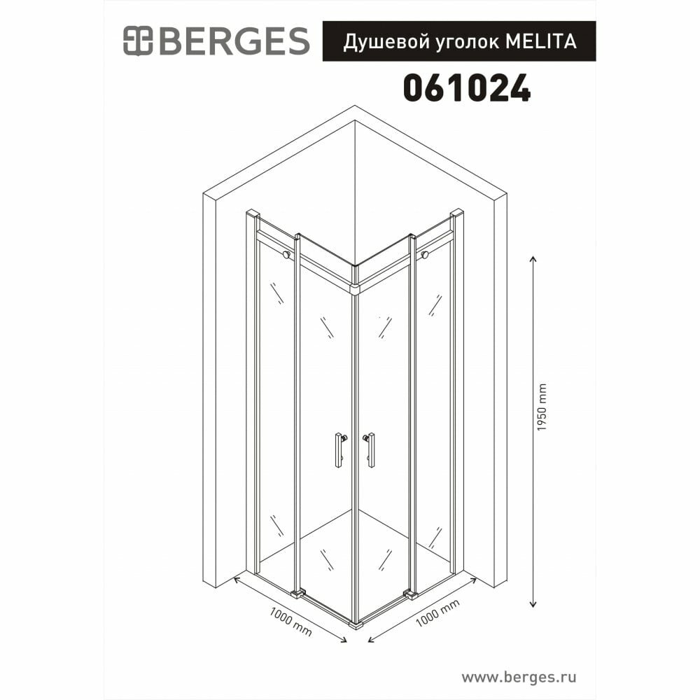 Душевой уголок BERGES MELITA 1950x1000x1000 хром сильвер 061024 интересное: