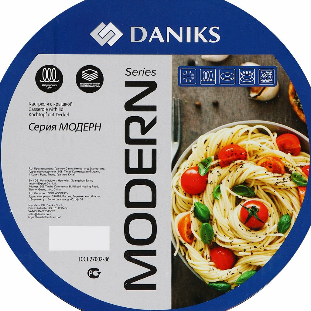 Кастрюля нерж, 2.9 л, с крыш, Daniks, Модерн серый, SD-18N, индукц