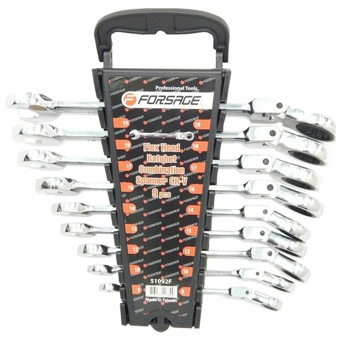 Набор ключей комбинированных трещоточных с шарниром, 9 пр: 8, 10, 12, 13, 14, 16, 17, 18, 19 мм, в, FORSAGE F51092F (1 шт.)