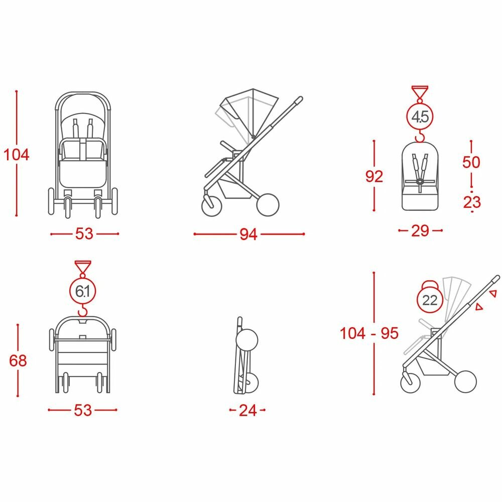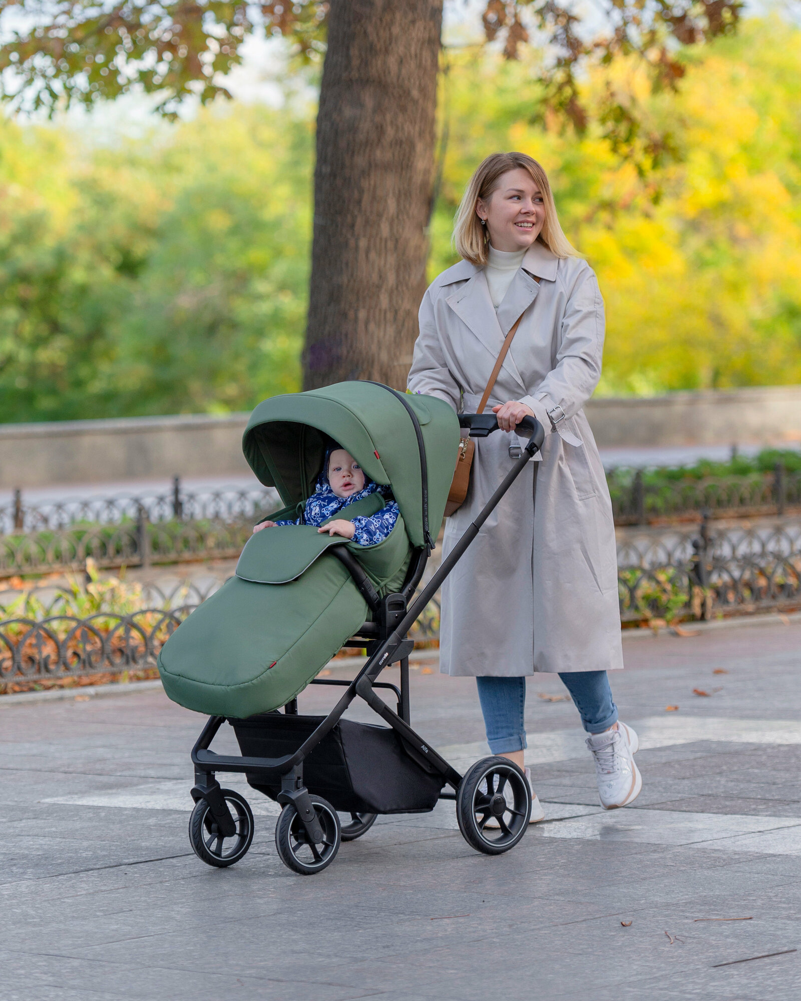 | Дополнительная информация | резиновые надувные колёса с протектором; межножный ограничитель сползания; корзина с плотным дном имеет кармашек, закрывающийся на молнию; поворотный съёмный бампер; текстиль коляски: сиденье и капюшон снимаются для чистки и ухода |