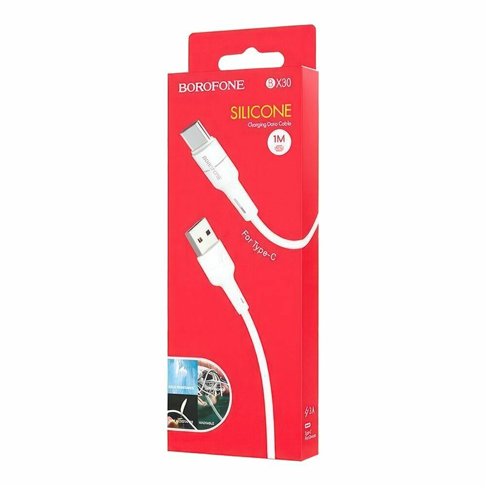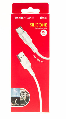 USB кабель BOROFONE BX30 Silicone Type-C, 3А, 1м, силикон (белый)