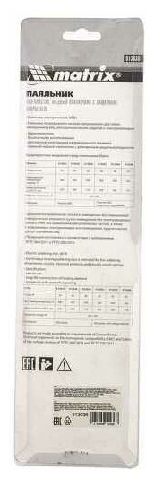 MATRIX Паяльник, пластик ABS, класс защиты 1, индикатор, медный наконечник с долговечным покрытием, 220 В, 60 W Matrix, ( 913046 )