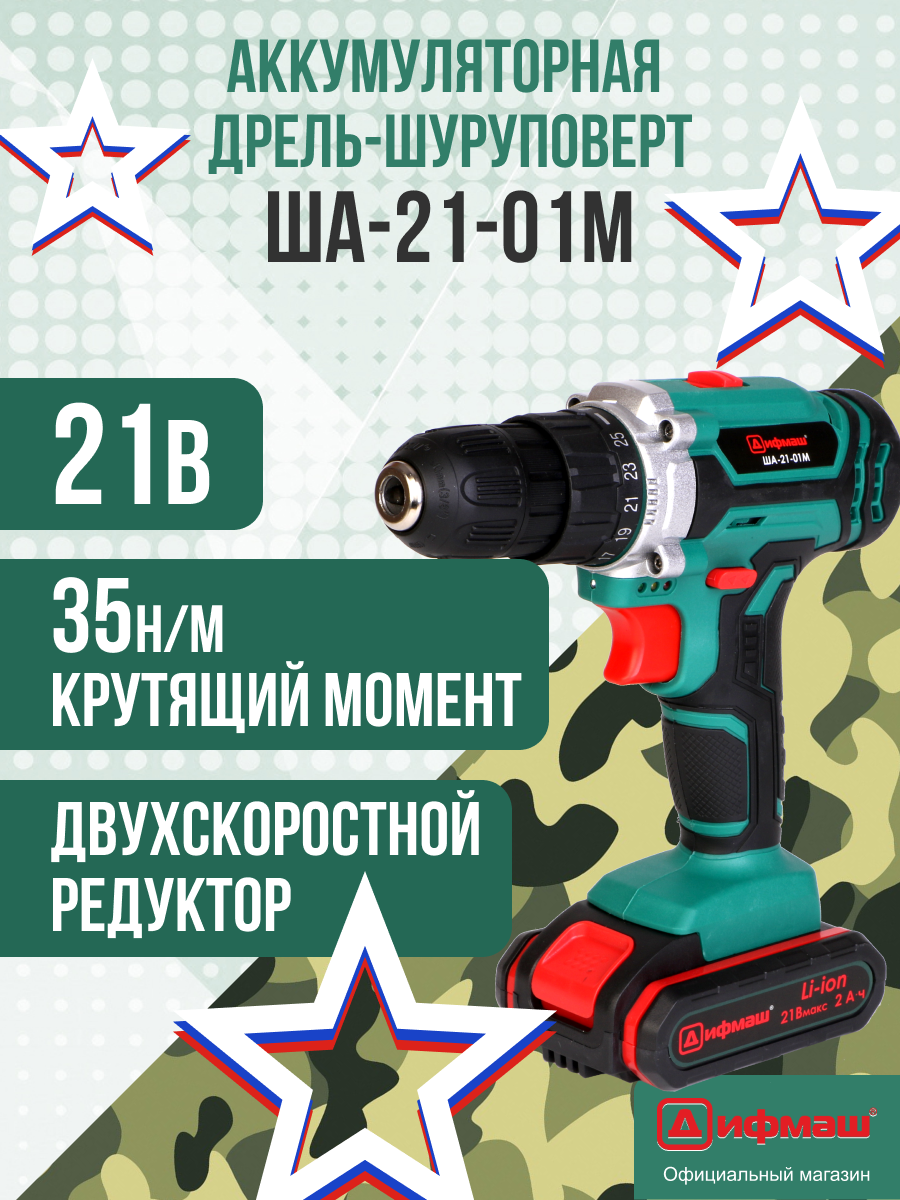 Купить шуруповерт аккумуляторный дифмаш ША-21-01М 20В Li-Ion 2Ач 2 АКБ