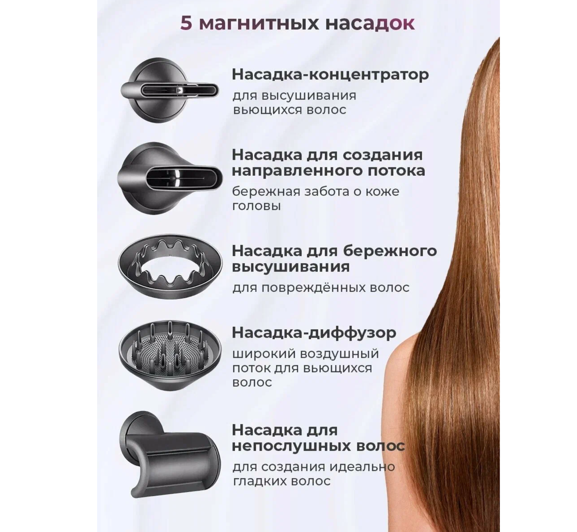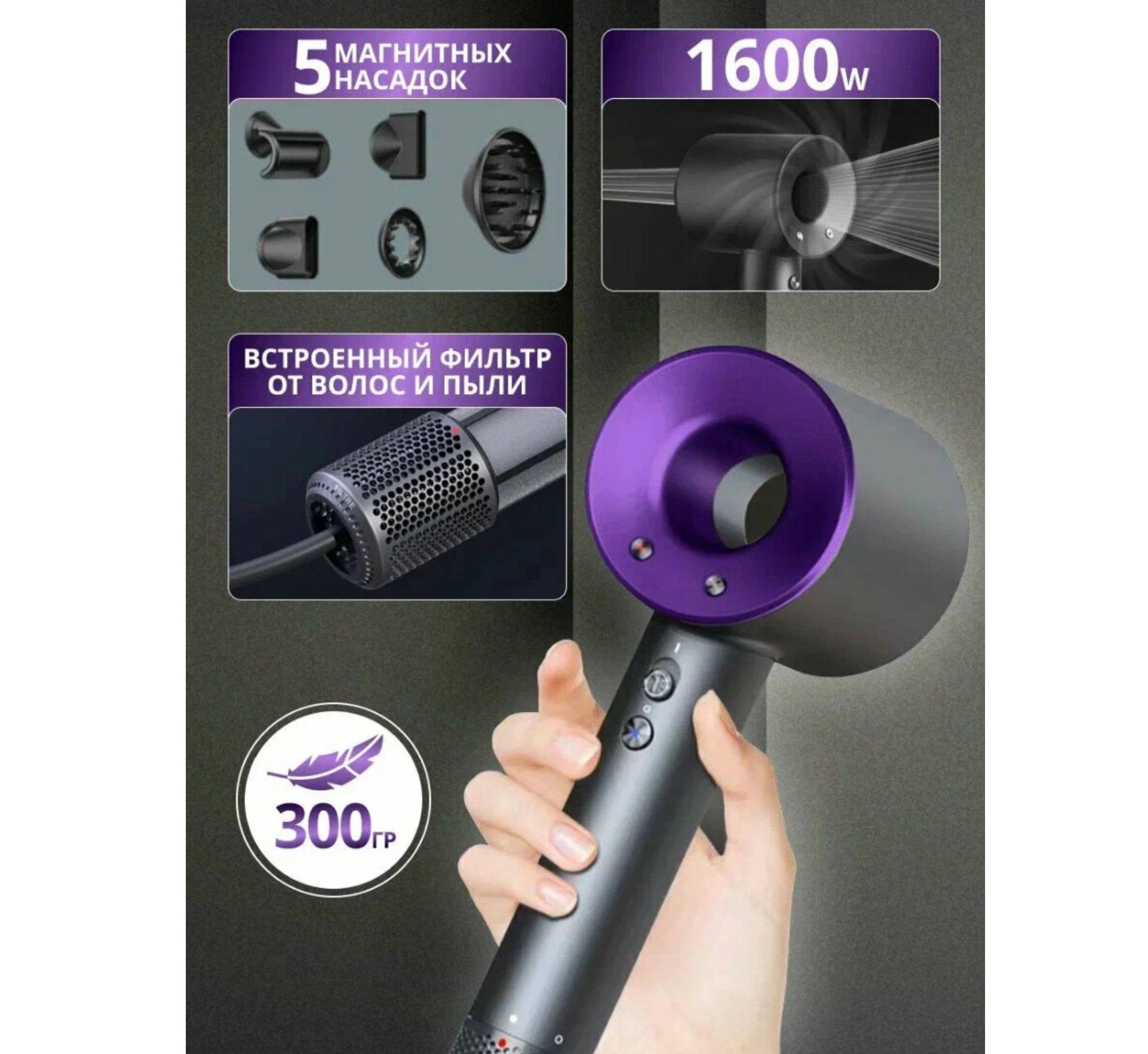 СохранитьФен для волос профессиональный маленький с насадками 5в1 фиолетовый интересное: