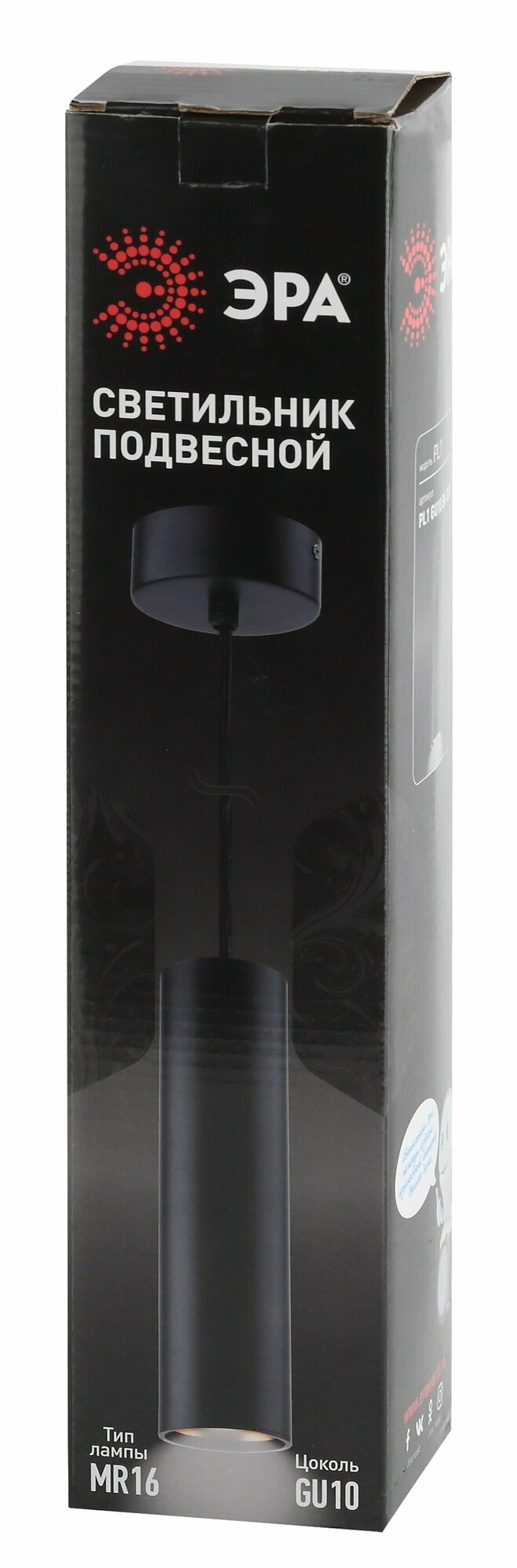 Светильник ЭРА Подвес PL1 BK металл, GU10, D80*300мм, черный