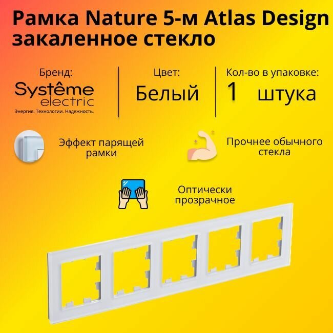 Купить Рамка пятиместная Systeme Electric Atlas Design Nature закаленное стекло белый глянец ATN320105 - 1 шт.