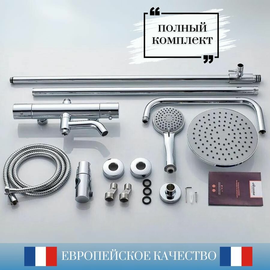 Душевая система Accoona A83305, с термостатом, троп.лейка /душ/ короткий излив, Латунь