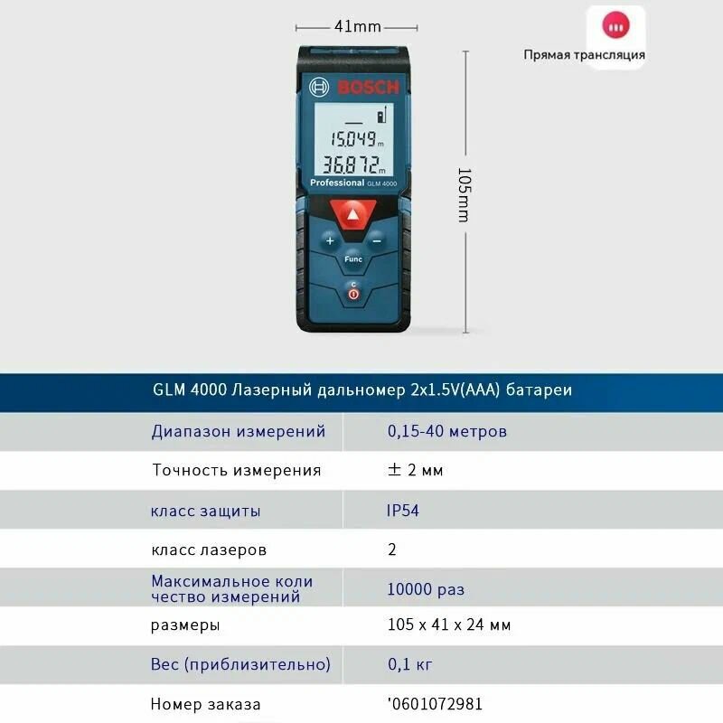 Лазерный дальномер Bosch GLM 4000 Professional (0,15 - 40 м)