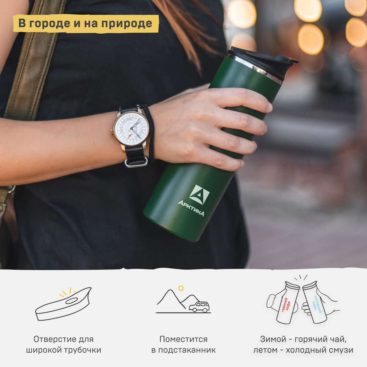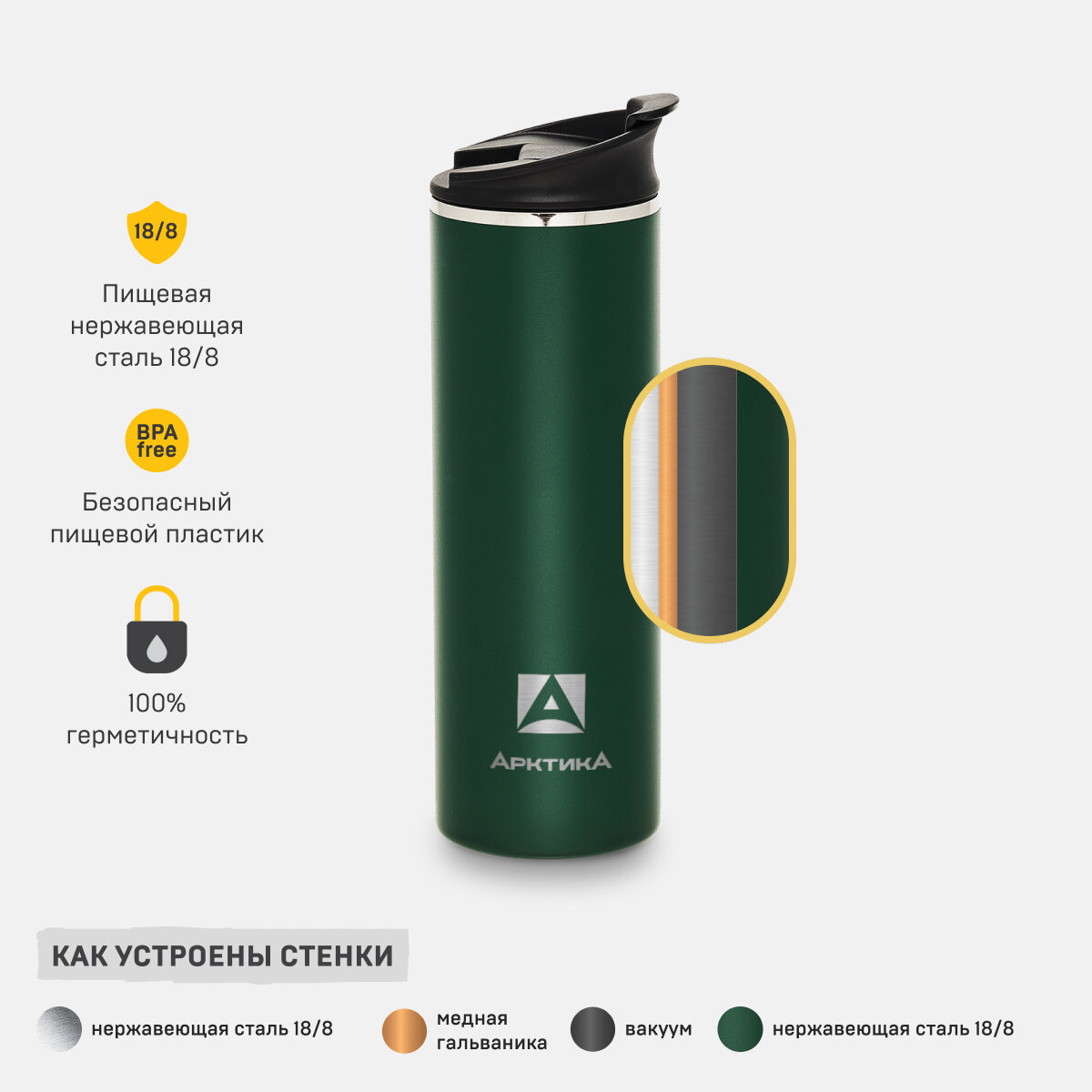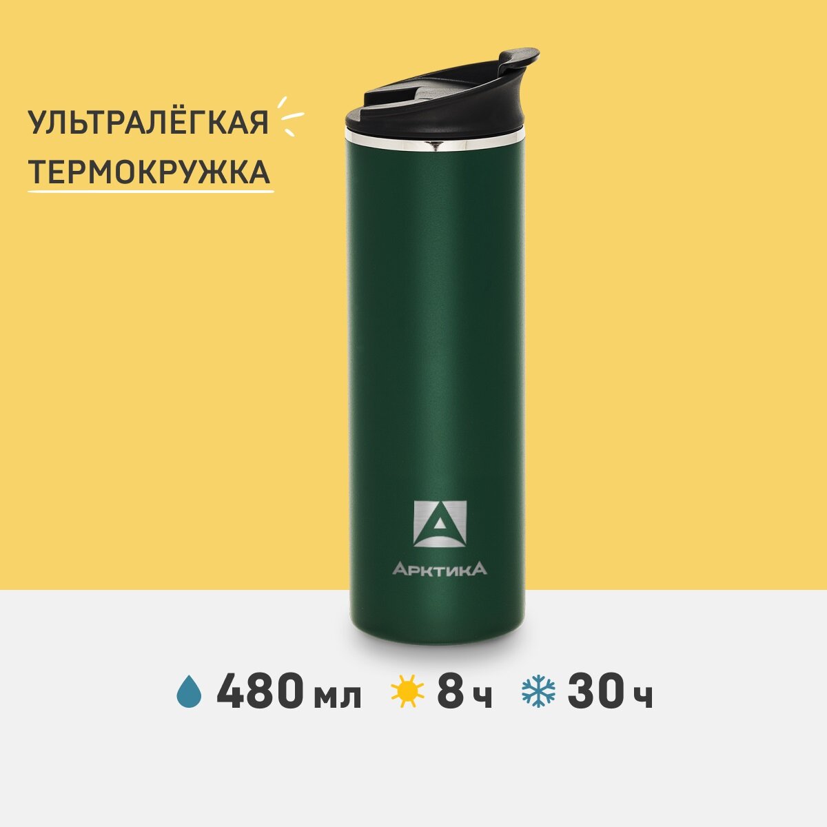 Термокружка для чая и кофе Арктика 710-480 зеленый 0.48 литров легкий термостакан для напитков с крышкой-замком