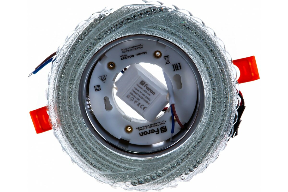 Светильник встраиваемый с белой LED подсветкой CD4037 потолочный GX53 без лампы, прозрачный, хром, FERON 40504 (1 шт.)
